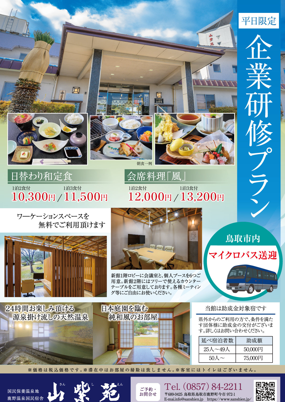 鳥取市内から約30分、三徳山三佛寺から約25分と鳥取観光の拠点として便利な場所です