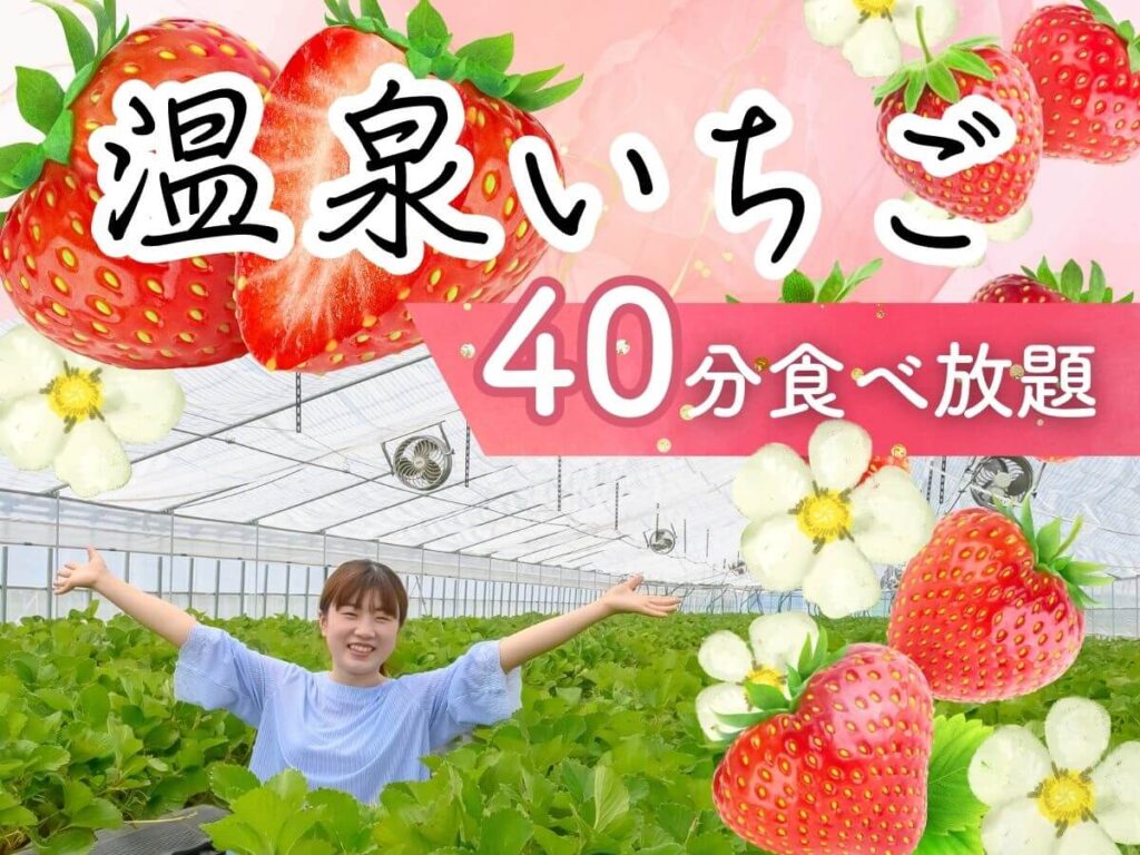 温泉熱を利用して育てた「温泉いちご」を40分間たっぷり満喫できる贅沢な内容です。